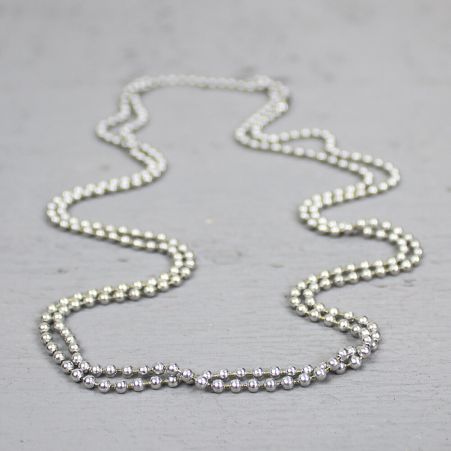 Dieses Kugelcollier aus Aluminium hat eine feine und leichte Ausstrahlung. Das Collier lässt sich einfach auf die gewünschte Länge einstellen und kann flexibel als kürzere oder längere Halskette getragen werden.