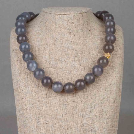 Halskette aus grauem Achat und einem vergoldeten Kreis. Diese Halskette ist eine limitierte Auflage, daher ist die Stückzahl begrenzt! Kombinieren Sie sie mit schönen Ohrringen, einem Ring und einem Armband für einen perfekten Look.