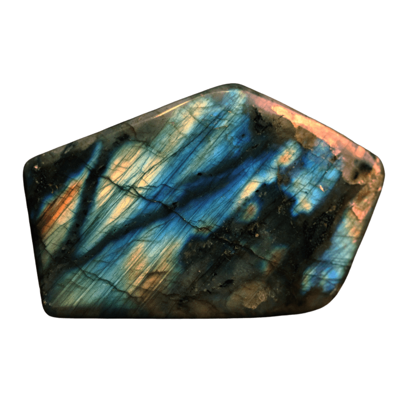 Labradorite is a magical, protective and spiritual stone. It protects one's own energy field (aura) from negative influences from the environment. When the daily grind exhausts you, Labradorite breathes new life into existence and creates space for spontaneity, excitement and adventure. When you move/turn the stone, the colors of the rainbow appear.