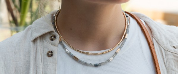 Colliers mit einem Touch of Gold. Diese Colliers bestehen aus Goldfilled oder aus einer Kombination von Materialien wie 925 Sterling Silber mit Goldfilled vergoldetem Silber oder 9 Karat. Mit oder ohne Edelstein robust oder fein. Diese Colliers gibt es in verschiedenen Stilen.