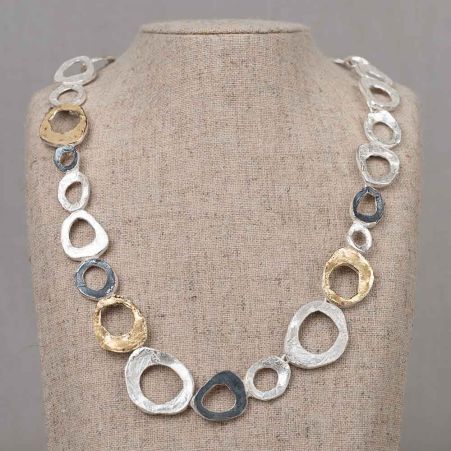 Collier kringen zilver + oxy + verguld 48 cm