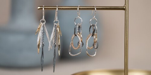 De Evergreens oorbellen zijn gemaakt van de drie materialen en daardoor krijgt het sieraad ook drie kleuren. Deze oorbellen blijven ook altijd lange tijd in collectie omdat het populaire sieraden zijn. De ontwerpen zijn ambachtelijk, tijdloos en altijd even anders dan anders!