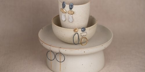Deze oorbellen zijn (deels) gemaakt met een Touch of Gold. Dat betekent dat het materiaal zilver verguld of Goldfilled is gebruikt in combinatie met 925 sterling zilver en/of geoxideerd zilver.