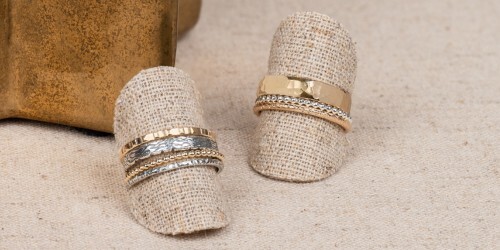 Onze Strapped ringen zijn ringen die bestaan uit losse bandjes. Ze worden bij elkaar gehouden door een zilveren plat bandje. Dit geeft het een leuk, uniek en speels effect! Ideaal te combineren.