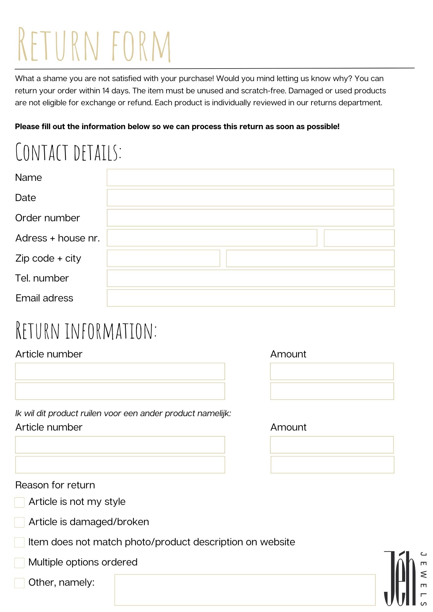 When returning / exchanging the product you must always complete the return /exchange form. We cannot process your package without this form.